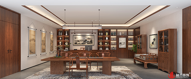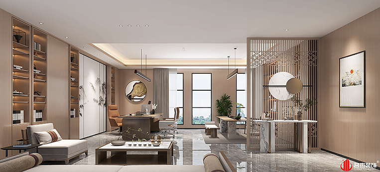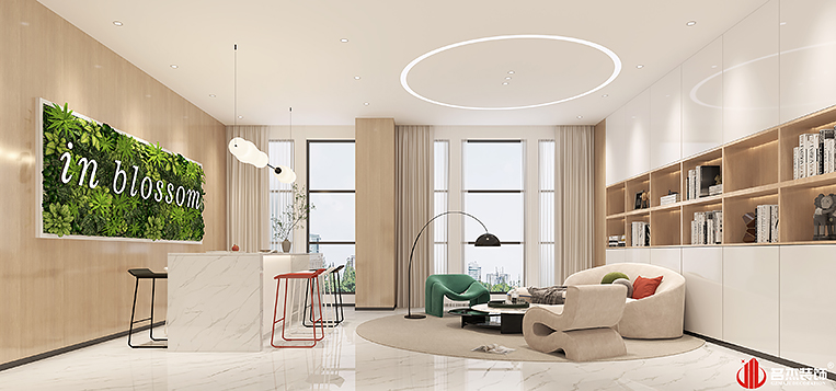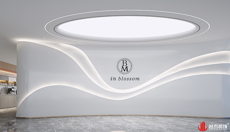 辦公裝修設計空間的主打風格是時尚簡約風格,但是設計團隊從化妝品行業中汲取設計靈感,同時加入一些線條的元素,堆疊出一種不同往常的時尚簡約風格。前臺區域則是使用簡單的線條,搭配圓弧的天花吊頂,天圓地方的設計概念,簡約而不簡單。而在電梯間這個地方,利用水紋不銹鋼的材料,結合弧線元素,具象化了中國龍這個設計元素。太陽,中式房屋,中國龍,寓意著江西瑞彩化妝品公司能夠龍騰四海。#廣州辦公室裝修#
