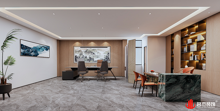 設計團隊以時尚簡約的風格作為這次設計的主打風格,前廳區域使用大理石背景墻加上碳晶板結合,搭配出不一樣的效果。而在經理室等空間,使用平頂的設計手法,搭配時尚的家具,也能夠展示出不俗的效果。#廣州辦公室裝修#
