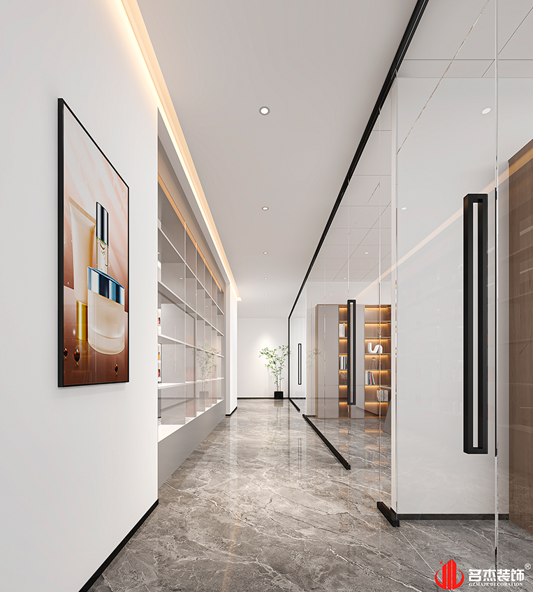 這是一家從事化妝品銷售和批發以及制造的企業,屬于化妝品行業,對于辦公室裝修設計空間的動態規劃是有一定的理解的,因此需要設計團隊要對這方面有著重點規劃。設計團隊為其定制一個時尚簡約風格,配合企業LOGO色,來作為這次辦公室裝修設計空間的主導風格。