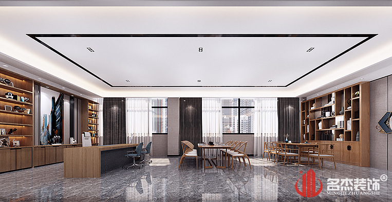 該辦公室裝修設計案例是一家集水上游樂設備、充氣滑梯、充氣城堡、充氣玩具等休閑娛樂設備的研發、生產、銷售為一體的綜合性企業。設計師根據和客戶的溝通,通過采用時尚前衛的設計觀念,以現代時尚穩重的方向進行設計,從而給人一種時尚大氣,沉穩的感覺。