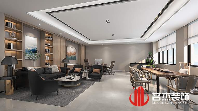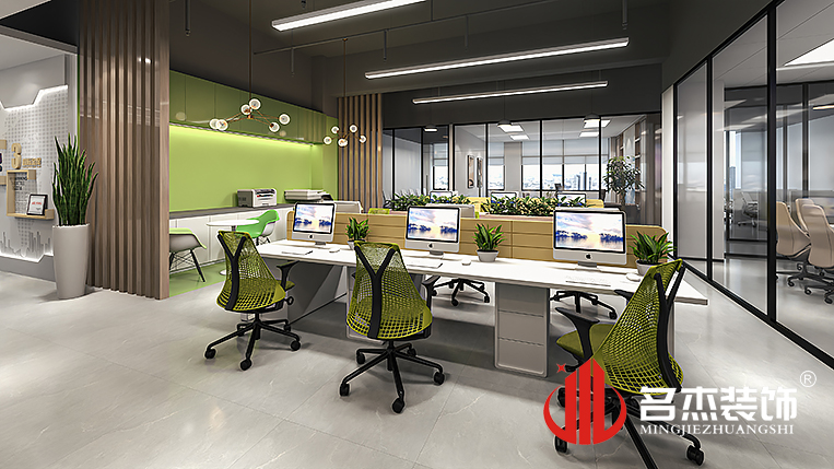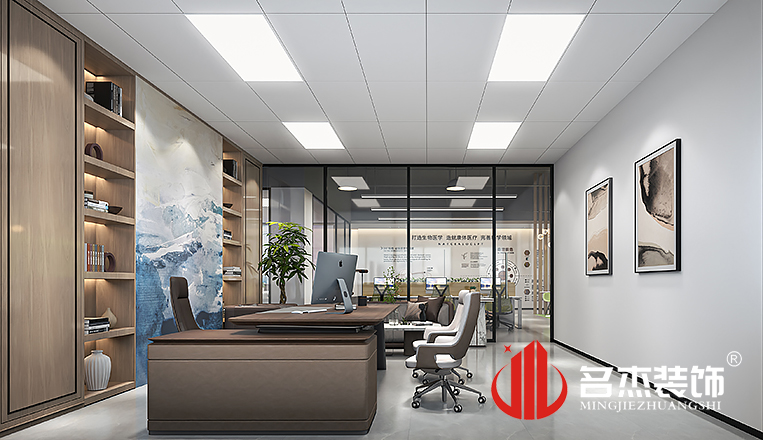 整體使用原木色調的材料來奠定現代簡約的風格,在辦公區域使用綠色作為點綴色,讓自然的元素加入到整體辦公室裝修設計當中,從而引申出一種親近自然的氛圍??偨浝硎依锩婕尤氩枋液徒哟墓δ?,在接待重要客戶的時候起到一個非常不錯的效果。