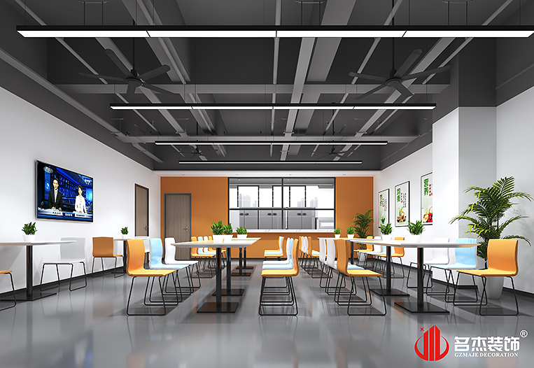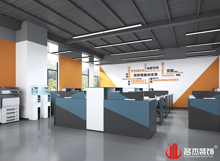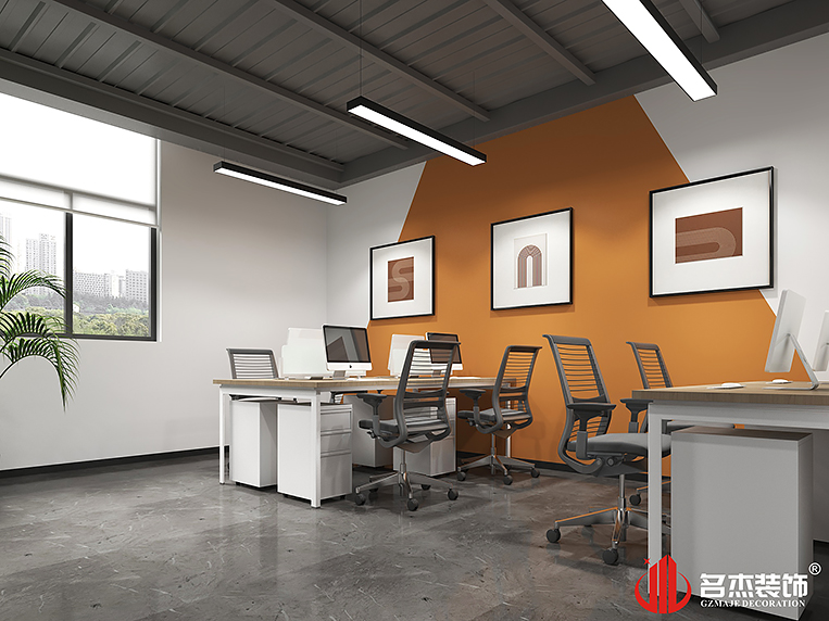 整體辦公室裝修設計風格采用現代工業風格,同時也在空間中加入logo色——橙色作為點綴色,讓空間也充滿活力,同時還能夠讓員工感受到活力滿滿的。不同的造型燈帶來的不同的感官享受,能夠讓空間變得更加有趣的同時,也是能夠讓空間變得更加有設計感。