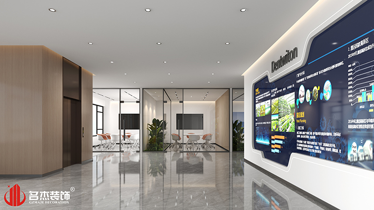 整體使用時尚簡約的風格,讓辦公空間看起來更加簡潔,同時在不同區域使用藍色作為點綴色,給空間增添了幾分科技感的同時,也讓空間變得不那么單調。前臺區域使用圓弧造型的吊頂,搭配弧線形的背景墻,形成一種呼應的同時,還能夠增加前臺空間的層次感。在辦公區域使用藍色噴漆,區別于傳統的黑白灰,讓空間更加具有辨識度。