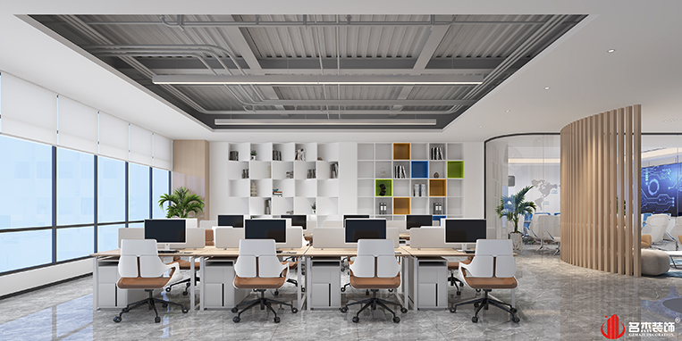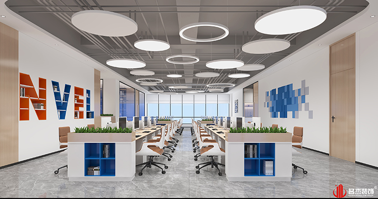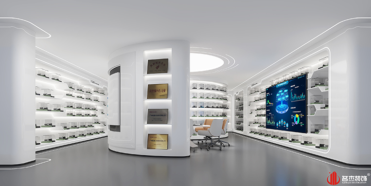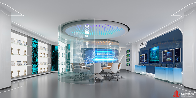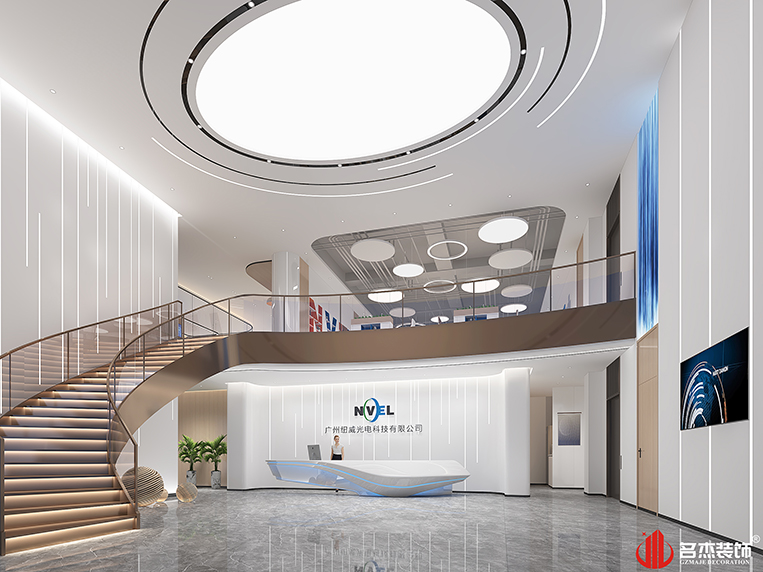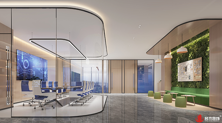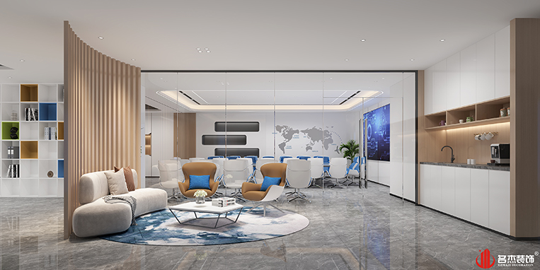 整體風格是按照時尚簡約來作為空間的主打風格,加入科技元素作為點綴,讓時尚簡約的空間變得更具未來感,同時在空間使用企業的logo色,讓空間的企業文化氛圍感更加深刻,也讓空間更具有未來感。在展廳區域使用弧形元素,搭配科技感,在整體設計上形成一個呼應,也突出該企業所在行業的特色,也能夠給來訪的客戶留下深刻的印象。#廣州辦公室裝修設計#