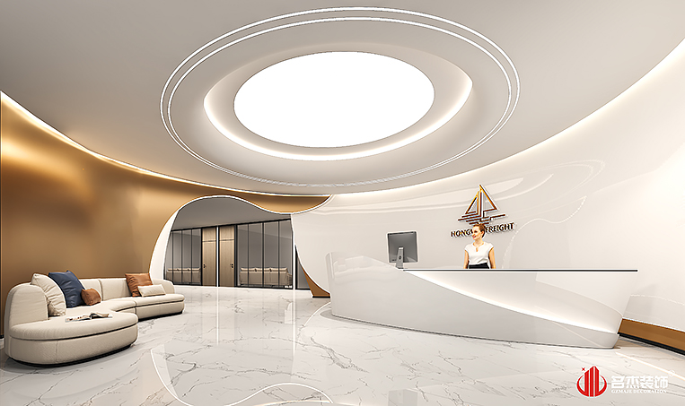 整個辦公裝修設計空間采用的是時尚簡約的風格作為主打風格,在這基礎上,設計團隊將企業的LOGO色加入到整體空間裝修設計當中。在前臺區域使用不規則的造型來作為進入到辦公空間的主通道入口,配合圓頂造型的天花,搭配出一種簡約而不簡單的設計效果。#廣州辦公室裝修設計公司#