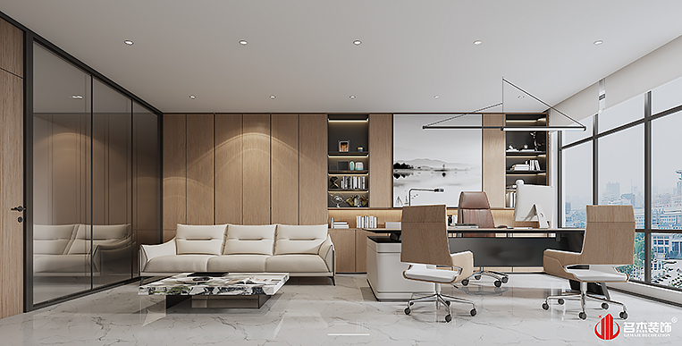 這家是以貨物運輸、從事港澳航線貨物運輸和船舶租賃為主的企業。設計團隊選擇時尚簡約的風格來作為這個船務辦公裝修設計空間的主打風格。配合企業LOGO色加入到空間當中,形成了一種專屬于鴻安泰船務企業的風格。
