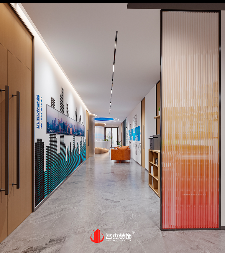 時尚簡約是這次設計的主導風格,但設計師并沒有遵循往常的時尚簡約設計手法,而是大膽結合空間特色,使用金色的作為空間的點綴色,同時,結合碳晶板以及沖孔鋁單板,微空間帶來了更好的視覺搭配。帶有引導線的動線規劃將各個功能區域功能全部發揮出來。空間中時不時出現的撞色設計,也為該空間帶來更多的視覺沖擊感。#廣州辦公室裝修設計公司#