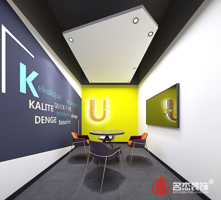 抖音快手短視頻公司主要以紅黃兩個配色作為辦公室裝修整體的主色調,紅色代表紅紅火火,也表達了對快火短視頻的未來期待。洽談室的一面墻運用了大面積的黃色來作為背景色,在洽談中也會顯得更加有自信。整個空間利用大量的燈光打造明亮的,時尚的氛圍。